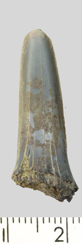Зуб (фрагмент). Акула. Scapanorhynchus gigas Woodward, 1889. Классификация: Хордовые Chordata, Позвоночные Vertebrata, Хрящевые рыбы Chondrichthyes, Пластиножаберные Elasmobranchii