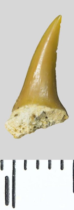 Зуб. Акула. Odontaspis venusta (Leriche, 1929). Классификация: Хордовые Chordata, Позвоночные Vertebrata, Хрящевые рыбы Chondrichthyes, Пластиножаберные Elasmobranchii