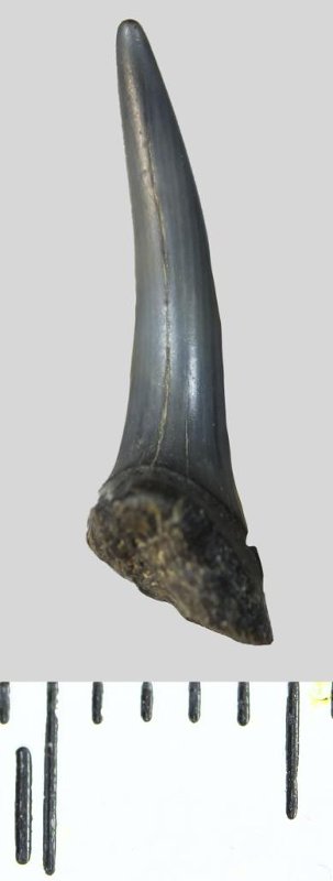 Зуб. Акула. Scapanorhynchus raphiodon (Agassiz, 1843). Классификация: Хордовые Chordata, Позвоночные Vertebrata, Хрящевые рыбы Chondrichthyes, Пластиножаберные Elasmobranchii