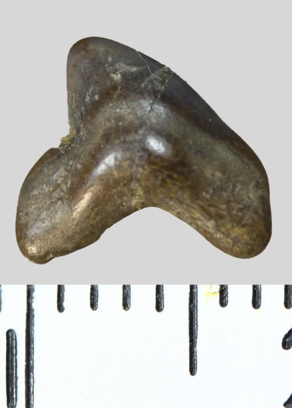 Зуб. Акула. Anacoracidae gen. et sp. indet. Классификация: Хордовые Chordata, Позвоночные Vertebrata, Хрящевые рыбы Chondrichthyes, Пластиножаберные Elasmobranchii