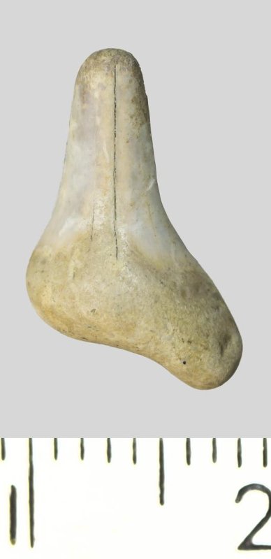 Зуб. Акула. Lamniformes gen. et sp. indet. Классификация: Хордовые Chordata, Позвоночные Vertebrata, Хрящевые рыбы Chondrichthyes, Пластиножаберные Elasmobranchii