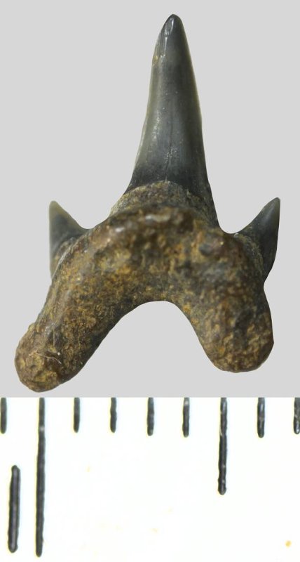 Зуб. Акула. Protolamna sp. Классификация: Хордовые Chordata, Позвоночные Vertebrata, Хрящевые рыбы Chondrichthyes, Пластиножаберные Elasmobranchii
