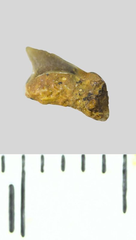 Зуб. Акула. Archaeolamna sp. Классификация: Хордовые Chordata, Позвоночные Vertebrata, Хрящевые рыбы Chondrichthyes, Пластиножаберные Elasmobranchii