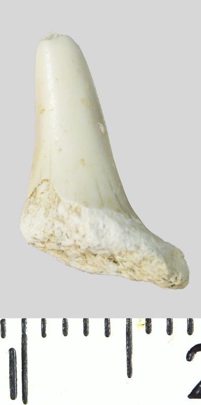 Зуб (фрагмент). Акула. Lamniformes gen. et sp. indet. Классификация: Хордовые Chordata, Позвоночные Vertebrata, Хрящевые рыбы Chondrichthyes, Пластиножаберные Elasmobranchii
