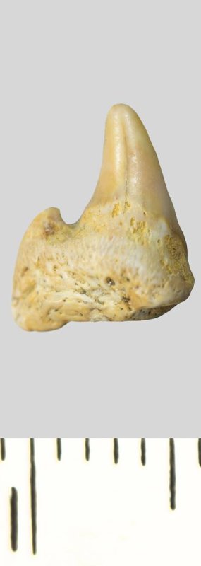 Зуб. Акула. Odontaspis macrorhiza (Cope) Leriche, 1902. Классификация: Хордовые Chordata, Позвоночные Vertebrata, Хрящевые рыбы Chondrichthyes, Пластиножаберные Elasmobranchii