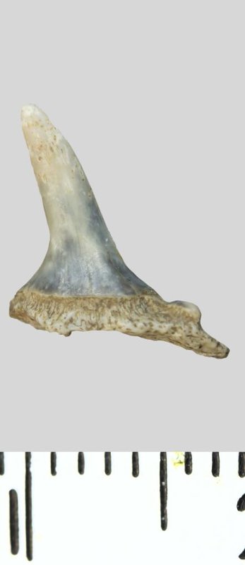 Зуб. Акула. Odontaspis whitei Arambourg, 1952. Классификация: Хордовые Chordata, Позвоночные Vertebrata, Хрящевые рыбы Chondrichthyes, Пластиножаберные Elasmobranchii