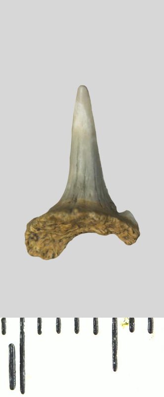 Зуб. Акула. Odontaspis whitei Arambourg, 1952. Классификация: Хордовые Chordata, Позвоночные Vertebrata, Хрящевые рыбы Chondrichthyes, Пластиножаберные Elasmobranchii