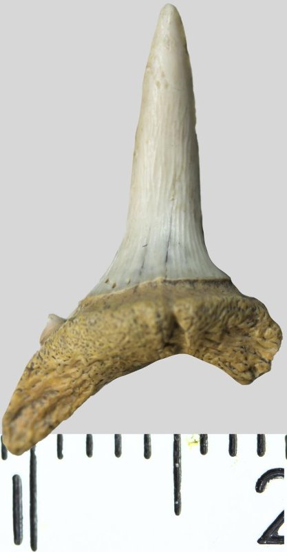 Зуб. Акула. Odontaspis whitei Arambourg, 1952. Классификация: Хордовые Chordata, Позвоночные Vertebrata, Хрящевые рыбы Chondrichthyes, Пластиножаберные Elasmobranchii