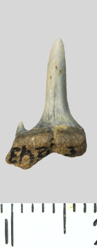 Зуб. Акула. Odontaspis whitei Arambourg, 1952. Классификация: Хордовые Chordata, Позвоночные Vertebrata, Хрящевые рыбы Chondrichthyes, Пластиножаберные Elasmobranchii