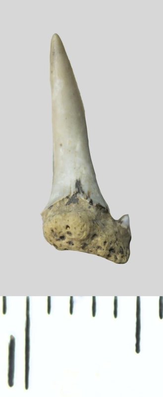 Зуб. Акула. Odontaspis whitei Arambourg, 1952. Классификация: Хордовые Chordata, Позвоночные Vertebrata, Хрящевые рыбы Chondrichthyes, Пластиножаберные Elasmobranchii