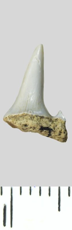 Зуб. Акула. Odontaspis whitei Arambourg, 1952. Классификация: Хордовые Chordata, Позвоночные Vertebrata, Хрящевые рыбы Chondrichthyes, Пластиножаберные Elasmobranchii