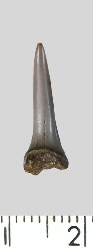 Зуб (фрагмент). Акула. Striatolamia striata (Winkler, 1874). Классификация: Хордовые Chordata, Позвоночные Vertebrata, Хрящевые рыбы Chondrichthyes, Пластиножаберные Elasmobranchii