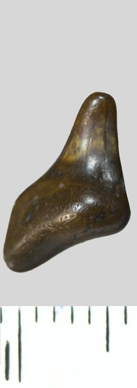 Зуб. Акула. Lamniformes gen. et sp. indet. Классификация: Хордовые Chordata, Позвоночные Vertebrata, Хрящевые рыбы Chondrichthyes, Пластиножаберные Elasmobranchii