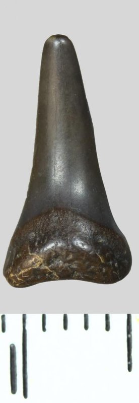 Зуб. Акула. Lamniformes gen. et sp. indet. Классификация: Хордовые Chordata, Позвоночные Vertebrata, Хрящевые рыбы Chondrichthyes, Пластиножаберные Elasmobranchii