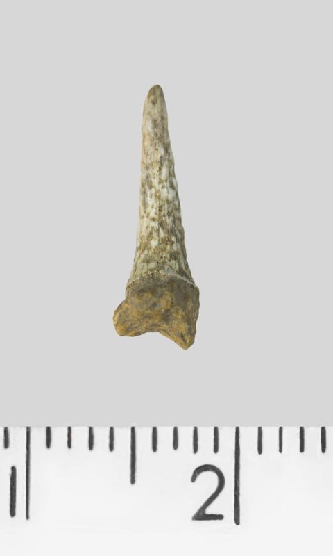 Зуб. Акула. Odontaspis whitei Arambourg, 1952. Классификация: Хордовые Chordata, Позвоночные Vertebrata, Хрящевые рыбы Chondrichthyes, Пластиножаберные Elasmobranchii