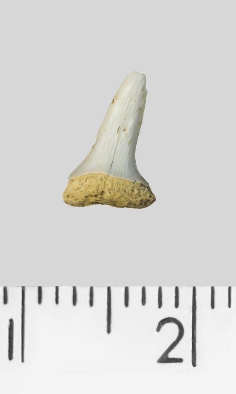 Зуб. Акула. Odontaspis whitei Arambourg, 1952. Классификация: Хордовые Chordata, Позвоночные Vertebrata, Хрящевые рыбы Chondrichthyes, Пластиножаберные Elasmobranchii