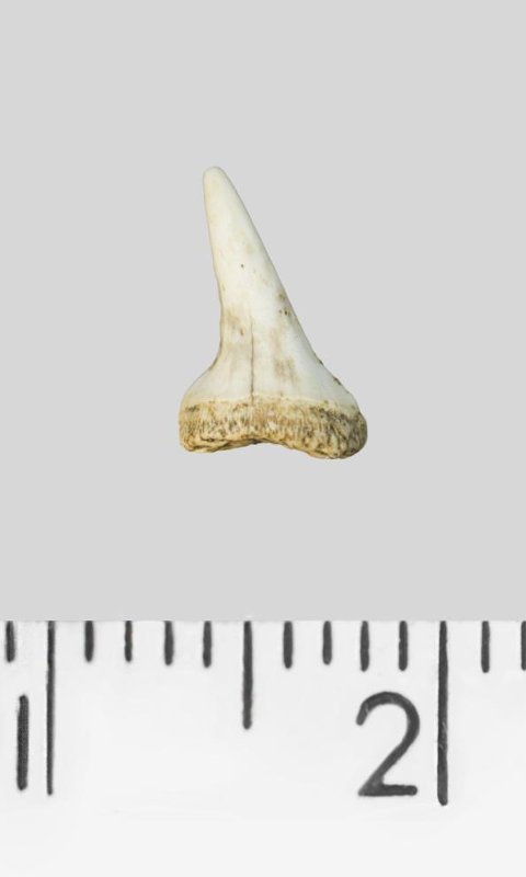 Зуб. Акула. Odontaspis whitei Arambourg, 1952. Классификация: Хордовые Chordata, Позвоночные Vertebrata, Хрящевые рыбы Chondrichthyes, Пластиножаберные Elasmobranchii