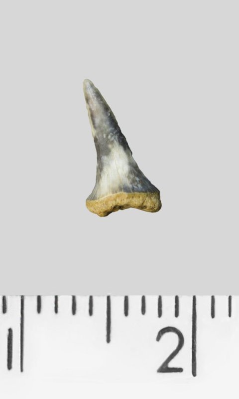 Зуб. Акула. Odontaspis whitei Arambourg, 1952. Классификация: Хордовые Chordata, Позвоночные Vertebrata, Хрящевые рыбы Chondrichthyes, Пластиножаберные Elasmobranchii