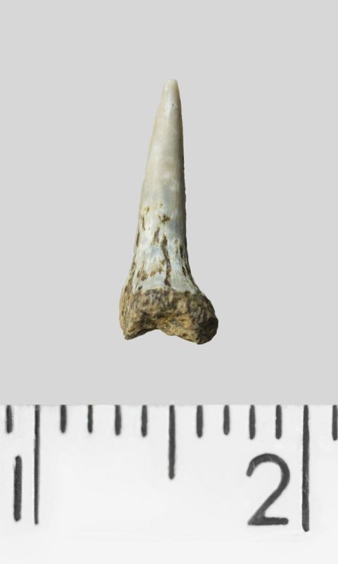 Зуб. Акула. Odontaspis whitei Arambourg, 1952. Классификация: Хордовые Chordata, Позвоночные Vertebrata, Хрящевые рыбы Chondrichthyes, Пластиножаберные Elasmobranchii