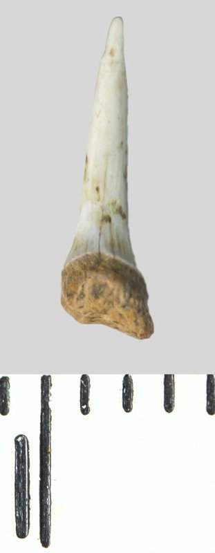 Зуб. Акула. Odontaspis whitei Arambourg, 1952. Классификация: Хордовые Chordata, Позвоночные Vertebrata, Хрящевые рыбы Chondrichthyes, Пластиножаберные Elasmobranchii
