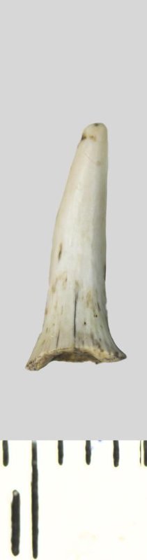 Зуб (фрагмент). Акула. Odontaspis whitei Arambourg, 1952. Классификация: Хордовые Chordata, Позвоночные Vertebrata, Хрящевые рыбы Chondrichthyes, Пластиножаберные Elasmobranchii