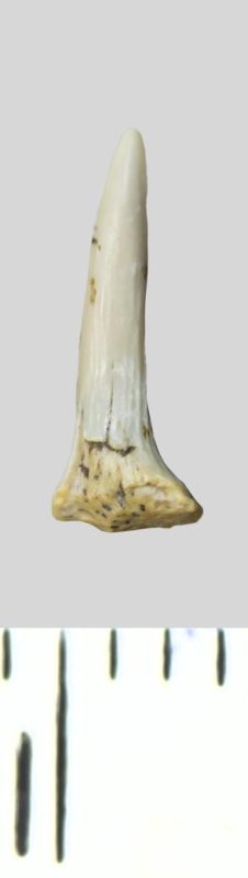 Зуб (фрагмент). Акула. Odontaspis whitei Arambourg, 1952. Классификация: Хордовые Chordata, Позвоночные Vertebrata, Хрящевые рыбы Chondrichthyes, Пластиножаберные Elasmobranchii