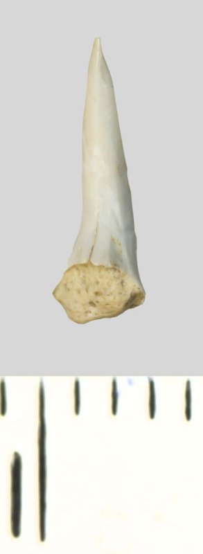Зуб (фрагмент). Акула. Odontaspis whitei Arambourg, 1952. Классификация: Хордовые Chordata, Позвоночные Vertebrata, Хрящевые рыбы Chondrichthyes, Пластиножаберные Elasmobranchii