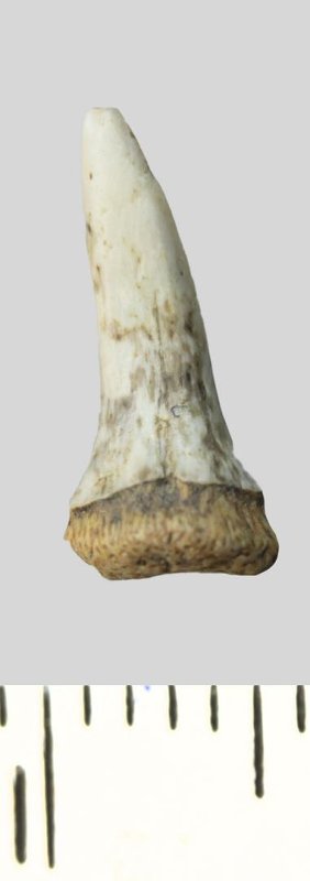 Зуб (фрагмент). Акула. Odontaspis whitei Arambourg, 1952. Классификация: Хордовые Chordata, Позвоночные Vertebrata, Хрящевые рыбы Chondrichthyes, Пластиножаберные Elasmobranchii