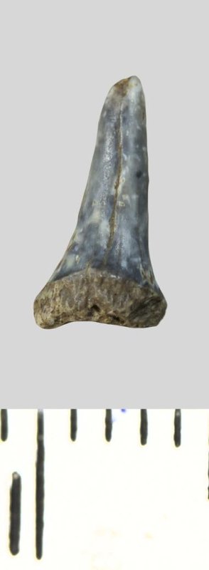 Зуб (фрагмент). Акула. Odontaspis whitei Arambourg, 1952. Классификация: Хордовые Chordata, Позвоночные Vertebrata, Хрящевые рыбы Chondrichthyes, Пластиножаберные Elasmobranchii