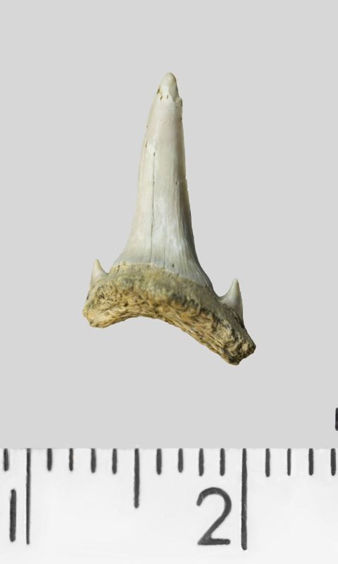Зуб. Акула. Odontaspis whitei Arambourg, 1952. Классификация: Хордовые Chordata, Позвоночные Vertebrata, Хрящевые рыбы Chondrichthyes, Пластиножаберные Elasmobranchii