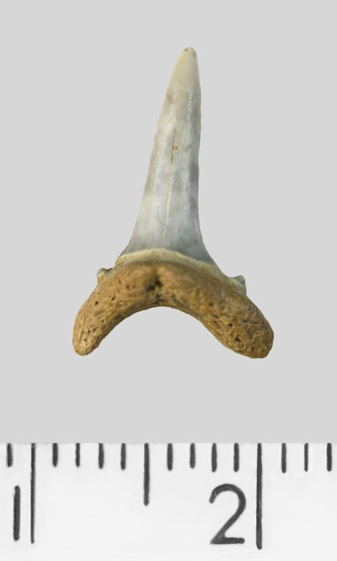Зуб. Акула. Odontaspis whitei Arambourg, 1952. Классификация: Хордовые Chordata, Позвоночные Vertebrata, Хрящевые рыбы Chondrichthyes, Пластиножаберные Elasmobranchii