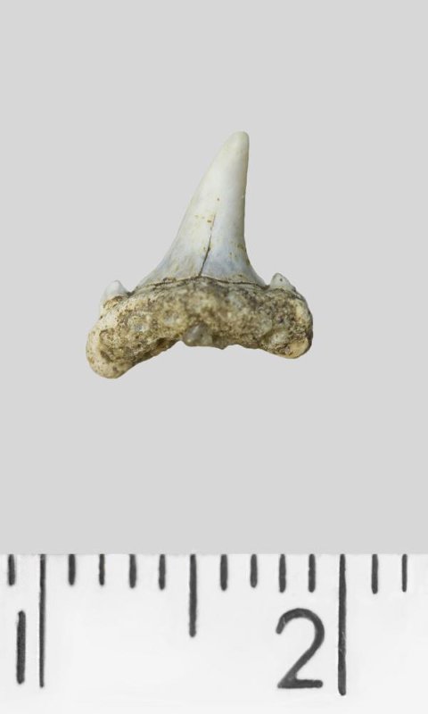 Зуб. Акула. Odontaspis whitei Arambourg, 1952. Классификация: Хордовые Chordata, Позвоночные Vertebrata, Хрящевые рыбы Chondrichthyes, Пластиножаберные Elasmobranchii