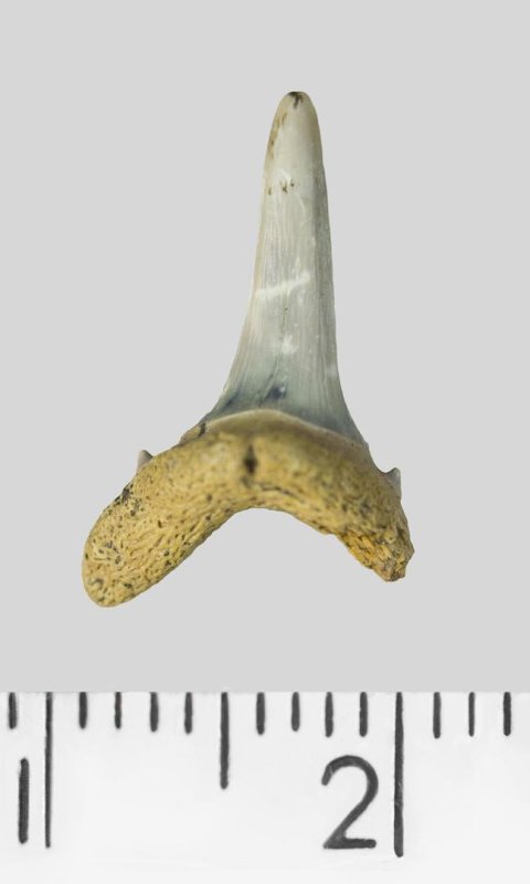 Зуб. Акула. Odontaspis whitei Arambourg, 1952. Классификация: Хордовые Chordata, Позвоночные Vertebrata, Хрящевые рыбы Chondrichthyes, Пластиножаберные Elasmobranchii
