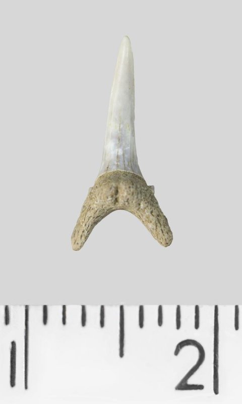 Зуб. Акула. Odontaspis whitei Arambourg, 1952. Классификация: Хордовые Chordata, Позвоночные Vertebrata, Хрящевые рыбы Chondrichthyes, Пластиножаберные Elasmobranchii