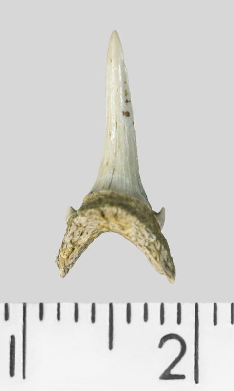 Зуб. Акула. Odontaspis whitei Arambourg, 1952. Классификация: Хордовые Chordata, Позвоночные Vertebrata, Хрящевые рыбы Chondrichthyes, Пластиножаберные Elasmobranchii