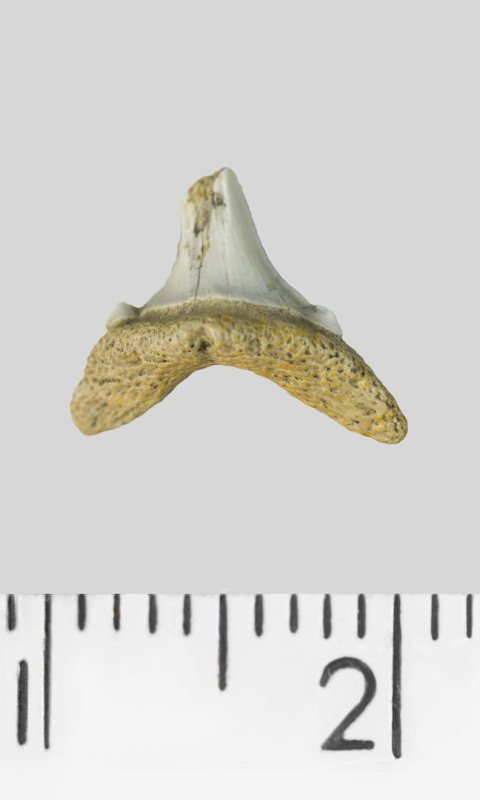 Зуб. Акула. Odontaspis whitei Arambourg, 1952. Классификация: Хордовые Chordata, Позвоночные Vertebrata, Хрящевые рыбы Chondrichthyes, Пластиножаберные Elasmobranchii