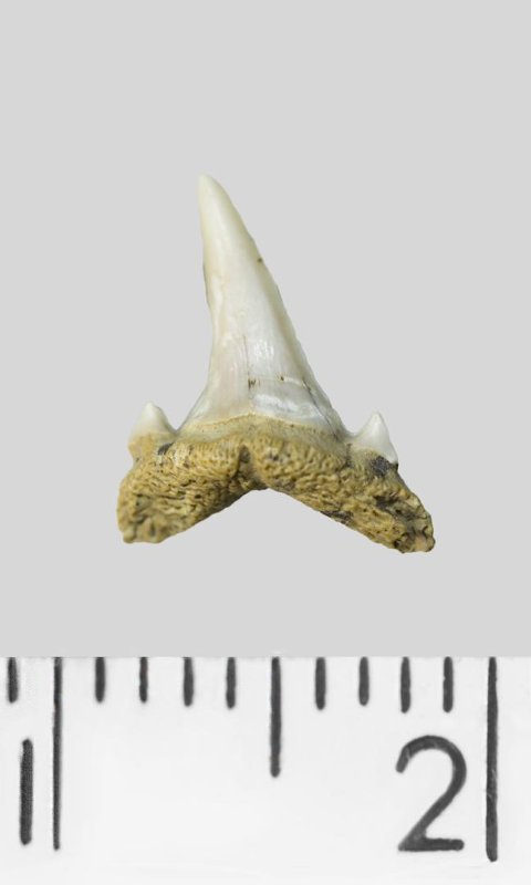 Зуб. Акула. Odontaspis whitei Arambourg, 1952. Классификация: Хордовые Chordata, Позвоночные Vertebrata, Хрящевые рыбы Chondrichthyes, Пластиножаберные Elasmobranchii