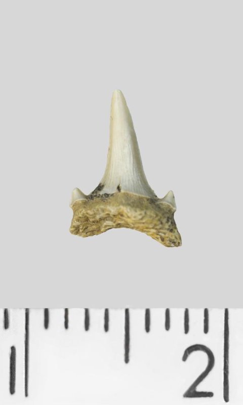 Зуб. Акула. Odontaspis whitei Arambourg, 1952. Классификация: Хордовые Chordata, Позвоночные Vertebrata, Хрящевые рыбы Chondrichthyes, Пластиножаберные Elasmobranchii