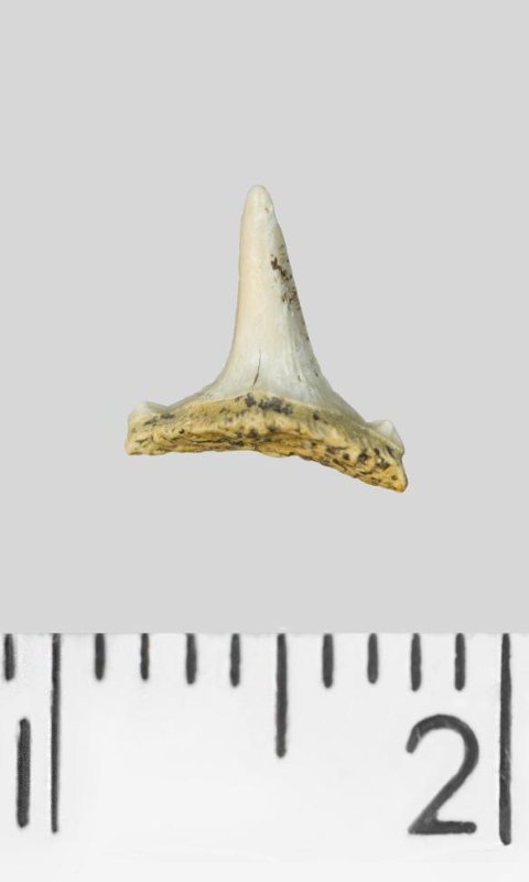 Зуб. Акула. Odontaspis whitei Arambourg, 1952. Классификация: Хордовые Chordata, Позвоночные Vertebrata, Хрящевые рыбы Chondrichthyes, Пластиножаберные Elasmobranchii
