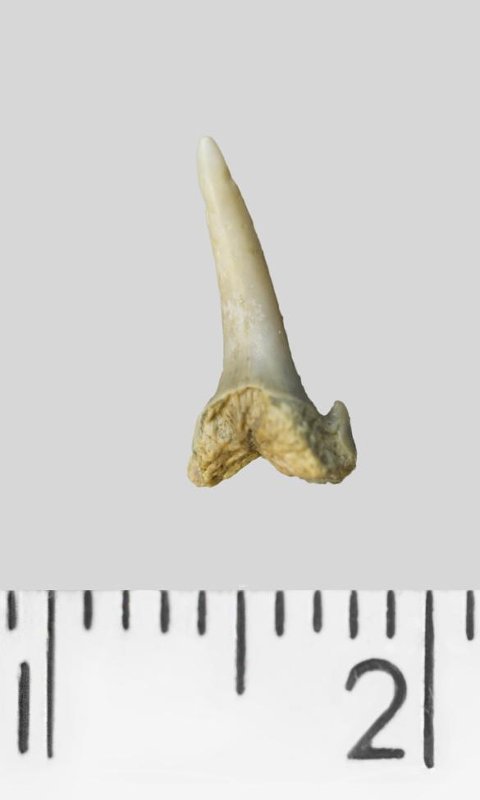 Зуб. Акула. Odontaspis whitei Arambourg, 1952. Классификация: Хордовые Chordata, Позвоночные Vertebrata, Хрящевые рыбы Chondrichthyes, Пластиножаберные Elasmobranchii