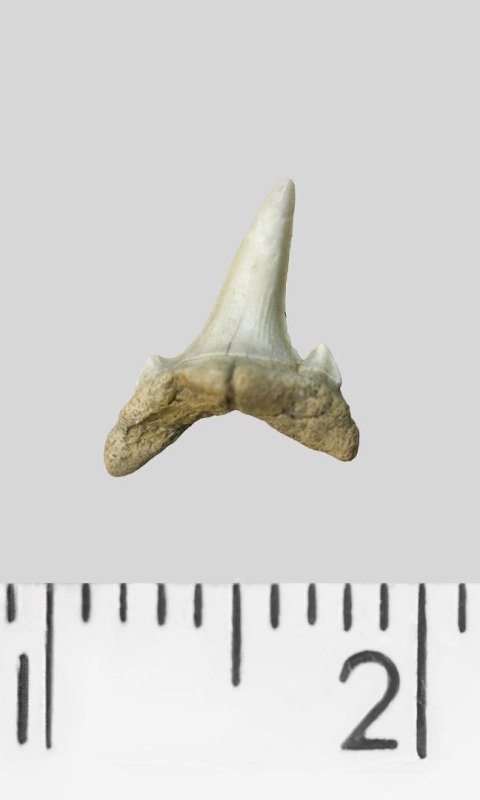 Зуб. Акула. Odontaspis whitei Arambourg, 1952. Классификация: Хордовые Chordata, Позвоночные Vertebrata, Хрящевые рыбы Chondrichthyes, Пластиножаберные Elasmobranchii
