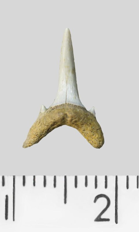 Зуб. Акула. Odontaspis whitei Arambourg, 1952. Классификация: Хордовые Chordata, Позвоночные Vertebrata, Хрящевые рыбы Chondrichthyes, Пластиножаберные Elasmobranchii