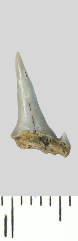 Зуб. Акула. Odontaspis whitei Arambourg, 1952. Классификация: Хордовые Chordata, Позвоночные Vertebrata, Хрящевые рыбы Chondrichthyes, Пластиножаберные Elasmobranchii