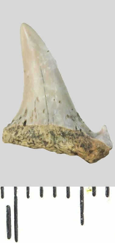 Зуб. Акула. Odontaspis whitei Arambourg, 1952. Классификация: Хордовые Chordata, Позвоночные Vertebrata, Хрящевые рыбы Chondrichthyes, Пластиножаберные Elasmobranchii
