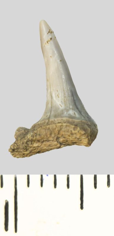 Зуб. Акула. Odontaspis whitei Arambourg, 1952. Классификация: Хордовые Chordata, Позвоночные Vertebrata, Хрящевые рыбы Chondrichthyes, Пластиножаберные Elasmobranchii