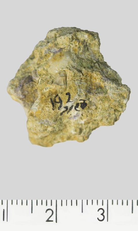 Зуб (фрагмент). Акула. Lamniformes gen. et sp. indet. Классификация: Хордовые Chordata, Позвоночные Vertebrata, Хрящевые рыбы Chondrichthyes, Пластиножаберные Elasmobranchii