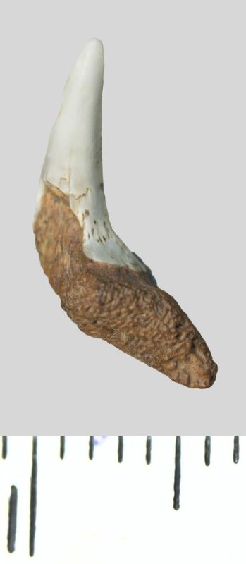 Зуб. Акула. Odontaspis whitei Arambourg, 1952. Классификация: Хордовые Chordata, Позвоночные Vertebrata, Хрящевые рыбы Chondrichthyes, Пластиножаберные Elasmobranchii