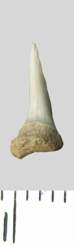 Зуб. Акула. Odontaspis whitei Arambourg, 1952. Классификация: Хордовые Chordata, Позвоночные Vertebrata, Хрящевые рыбы Chondrichthyes, Пластиножаберные Elasmobranchii
