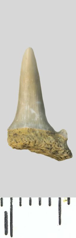 Зуб. Акула. Odontaspis whitei Arambourg, 1952. Классификация: Хордовые Chordata, Позвоночные Vertebrata, Хрящевые рыбы Chondrichthyes, Пластиножаберные Elasmobranchii
