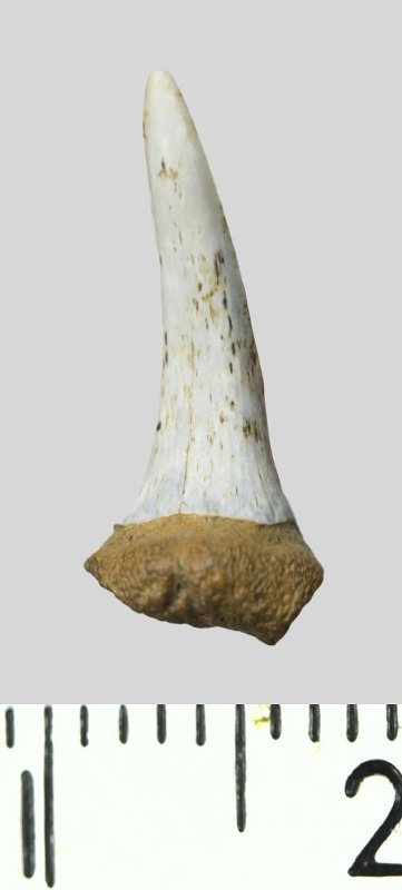 Зуб (фрагмент). Акула. Striatolamia striata (Winkler, 1874). Классификация: Хордовые Chordata, Позвоночные Vertebrata, Хрящевые рыбы Chondrichthyes, Пластиножаберные Elasmobranchii